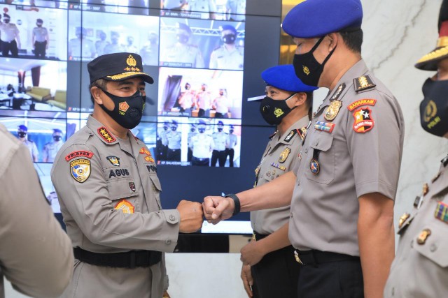 Kepala Badan Pemelihara Keamanan (Kabaharkam) Polri, Komjen Pol Agus Andrianto, memimpin Upacara Kenaikan Pangkat 390 personel jajaran Baharkam Polri secara virtual melalui Zoom Meeting, Selasa, 5 Januari 2021.