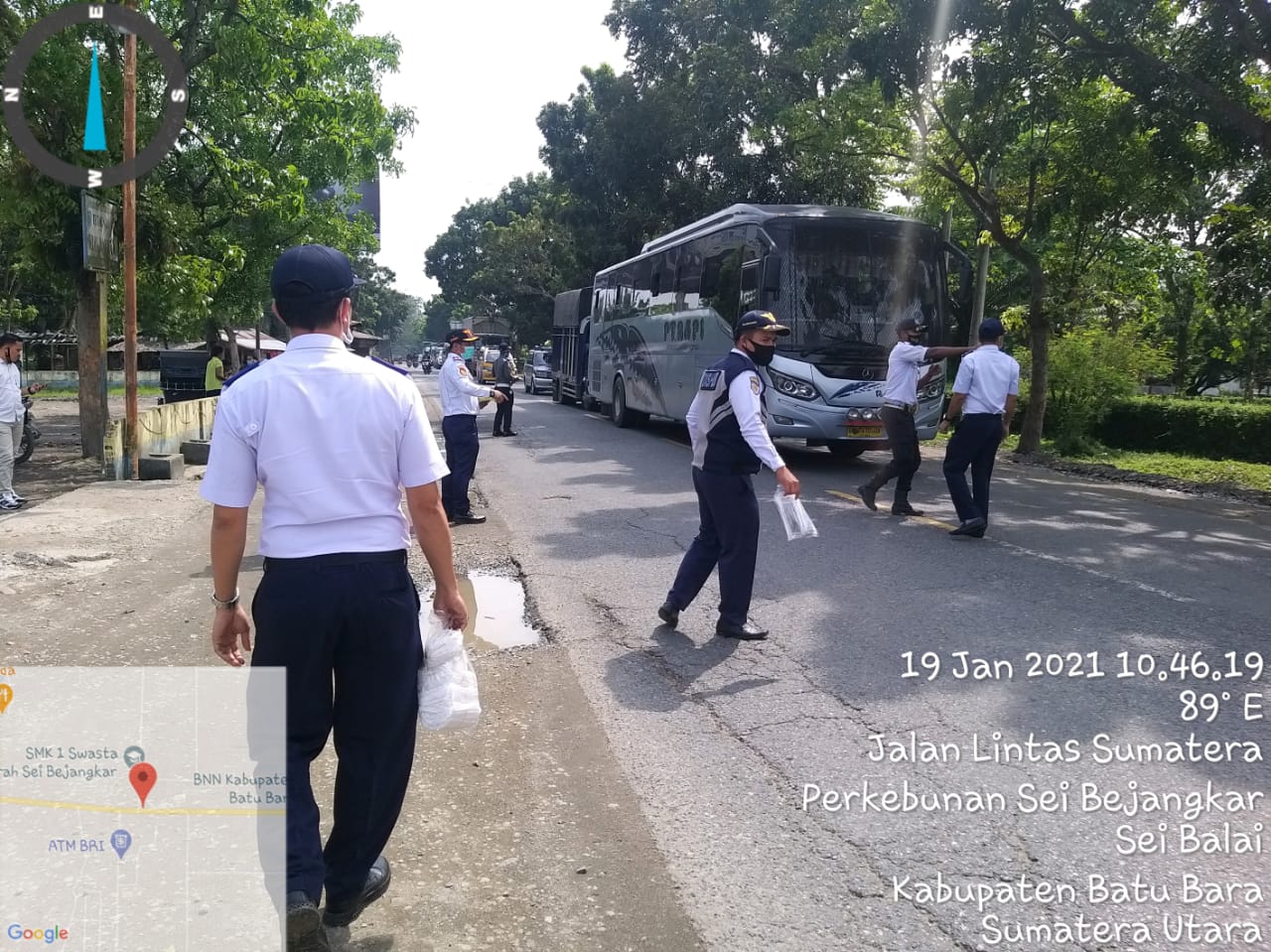 Kadishub Batu Bara Jonis Marpaung juga memberikan arahan kepada Jajaran nya, untuk berikan himbauan kepada pengguna jalan atau masyarakat yang di sekitar melintas harus menggunakan 3M.