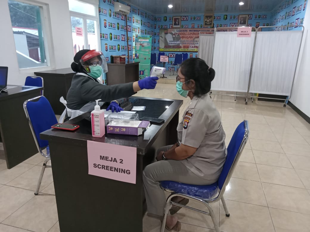 Kapolda Banten Irjen Pol Dr Rudy Heriyanto, S.H, M.H , M.B mengatakan bahwa saat ini tim Vaksinasi Biddokkes Polda Banten menyuntikkan vaksin untuk tenaga kesehatan dan petugas di Fasilitas Kesehatan Tingkat Pertama (FKTP) ini untuk dapat mencegah virus covid-19 yang saat ini sedang mewabah di sekitar kita, “Proses pemberian vaksin juga diawali dengan screening kesehatan meliputi pemeriksaan tekanan darah, suhu badan, nadi, respirasi dan anamnesa riwayat penyakit yang pernah diderita, kalau sudah layak tidak ada gejala baru bisa di Vaksin. Dan Vaksin disuntikkan ke tenaga medis dan FKTP, serta kepada dokter yang setiap hari bertugas melayani personel di rumah sakit Bhayangkara Polda Banten” ungkap Kapolda Banten.