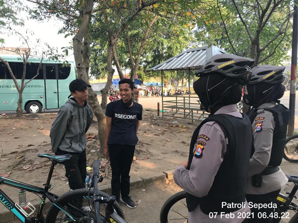 Kota Serang – Dalam upaya memberikan keamanan dan mendekatkan diri ke masyarakat, Direktorat Samapta Polda Banten melakukan patroli bersepeda, Minggu (07/02/2021) pukul 06.00 wib.