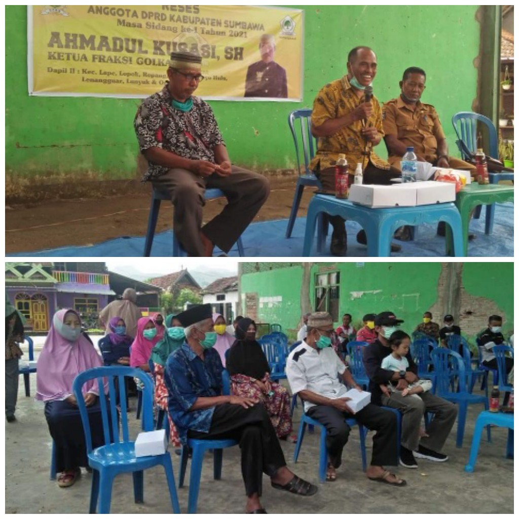 Sebagai kewajiban yang harus dilaksanakan kepada Konstituen Anggota DPRD Kabupaten Sumbawa pada awal bulan Februari ini melaksanakan Reses Perdana, termasuk Ahmadul Kusasi, SH., Ketua Fraksi Golkar melaksanakan Reses pada hari pertama, Senin (8/2) di Gedung Serba Guna Desa Mamak Kecamatan Lopok.