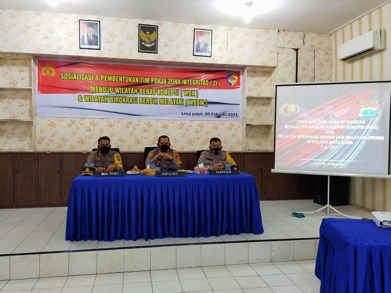 Secara resmi pembukaan & pembentukan Tim Pokja Wilayah Bebas Korupsi (WBK) & Wilayah Birokrasi Bersih Melayani (WBBM) Kapolres Batu Bara AKBP Ikhwan Lubis, S.H, M.H juga didampingi Wakapolres Kompol Rudi Candra, S.H, M.H juga Kabag Ren Kompol DBD Sihotang, S.H serta seluruh jajaran Polsek wilayah hukum Polres Batu Bara di Aula Bhayangkari Polres Batu Bara, Selasa (09/02/2021)