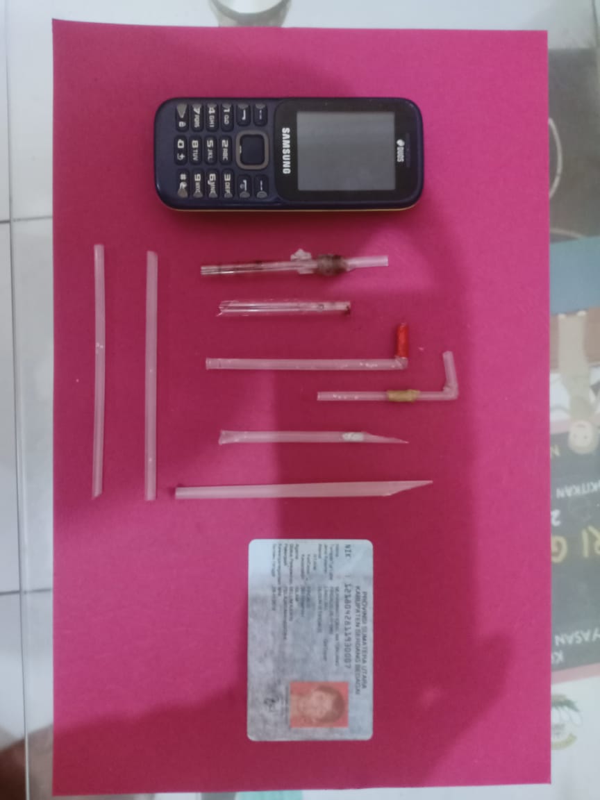 Kemudian di TKP kedua, petugas menemukan 1 HP Samsung warna Biru,2 buah pipa kaca pirex, 2 buah pipet yang ujungnya diruncingkan atau sekop, dan 4 buah pipet.