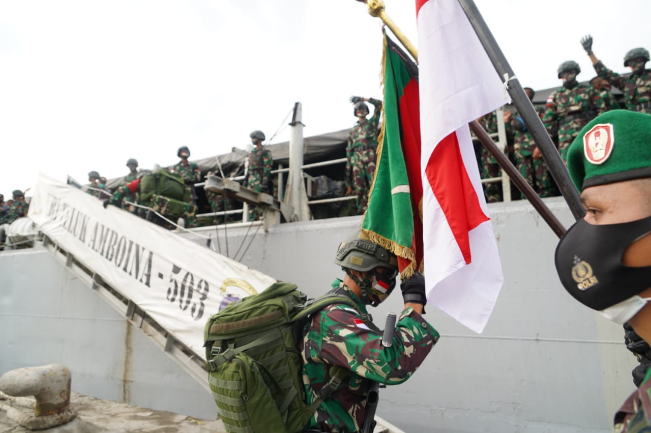 “Alhamdulillah hari ini kami berangkat menggunakan kapal Amboina dengan nomor 503 milik TNI AL dalam keadaan sehat wal’afiat dan siap menjalankan tugas selama 9 bulan kedepan,” ungkapnya.