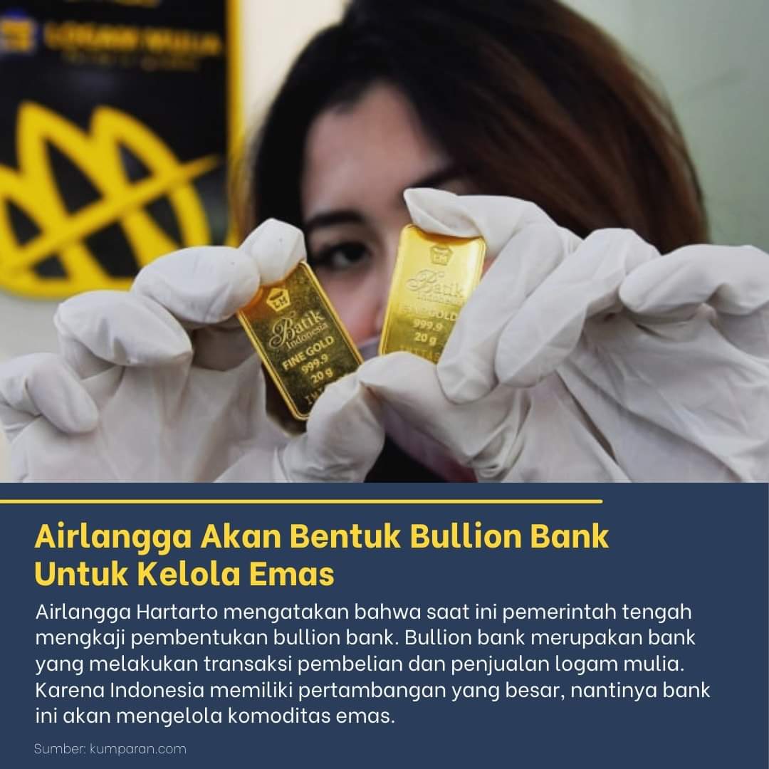 Menteri Koordinator bidang Perekonomian Airlangga Hartarto mengatakan bahwa saat ini pemerintah tengah mengkaji pembentukan bullion bank. Nantinya, bank ini akan mengelola komoditas emas.