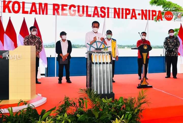 “Alhamdulillah hari ini kita resmikan dan operasikan karena telah selesai dibangun selama lima tahun yaitu Kolam Regulasi Nipa-Nipa. Ini adalah kolam untuk pengaturan air, terutama banjir dan genangan yang ada di Kota Makassar,” ujar Presiden dalam sambutannya.
