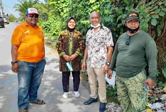 Kasi kebersihan kecamatan sunggal Novida Sambriana tokoh pemuda Bung Dhani Ginting serta elemen masyarakat dan pekerja kebersihan Kecamatan Sunggal. Terlihat Bantuan CSR 1 Beko Leader dan 6 Truck sampah kebersihan berjibaku melakukan kebersihan dilokasi.