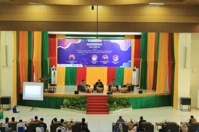 “Saya setiap hari melakukan monitoring dan mentoring di kampus ini, Insya Allah tidak ditemukan hal-hal yang kita sebut dengan intoleransi dan radikalisme,” kata Prof. Warul Walidin.