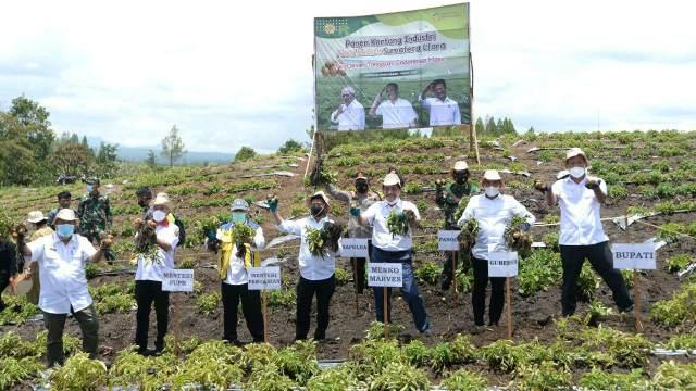 Humbahas,| Infoaktualnews.com,- Tiga Menteri yakni Menteri Koordinator (Menko) Bidang Kemaritiman dan Investasi (Marves), Menteri Pertanian dan Menteri Pekerjaan Umum menyambut positif hasil komoditas di Food Estate (FE) Kabupaten Humbang Hasundutan (Humbahas), Sumatera Utara (Sumut). Hasil komoditas yang dihasilkan di tiga area FE Humbahas sudah berada di atas rata-rata nasional.
