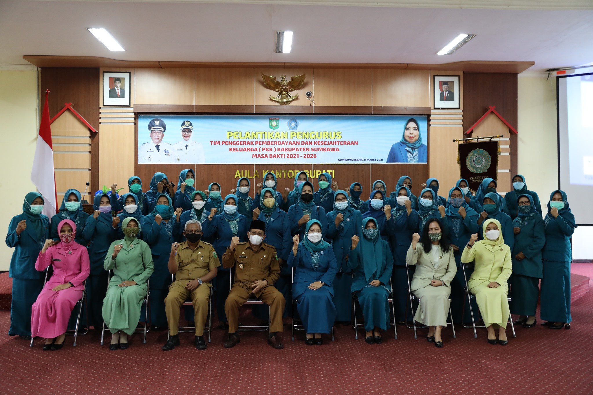 Sumbawa, Infoaktualnews.com –  Bupati Sumbawa Drs. H. Mahmud Abdullah, melantik Pengurus Tim Penggerak Pemberdayaan dan Kesejahteraan Keluarga (TP PKK) Kabupaten Sumbawa, yang dinahkodai oleh Ny. Sovia Noviantry Rayes Mahmud Abdullah, SE., sesuai SK Bupati Sumbawa Nomor 502 Tahun 2021, tentang Pembentukan TP PKK Kabupaten Sumbawa, Masa Bhakti 2021-2026.
