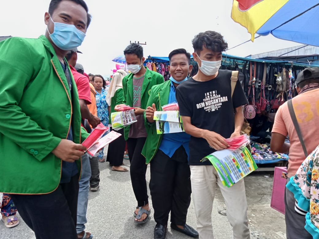 Langkat, | Infoaktualnews.com,- , Mahasiswa KKN STAI JM Posko VI Desa Sungai Ular kolaborasi bersama Senat Mahasiswa STAI JM Tanjung Pura Langkat, adakan giat bagi bagi Masker sekaligus sosialisasi pembagian brosur penerimaan mahasiswa baru (PMB) tahun 2021 di kecamatan secanggang. Hal ini di sampaikan oleh Ketua Posko VI Mahasiswa KKN STAI JM Desa Sungai Ular M. Agung Prabowo di dampingi rekan rekan nya,30 Maret 2021