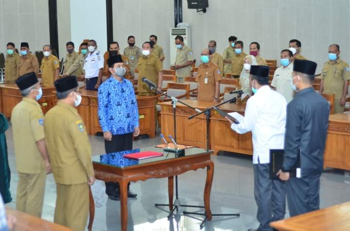 Bupati Lombok Barat (Lobar) H. Fauzan Khalid melantik Kepala Inspektorat Kabupaten Lombok Barat baru yang digelar di Aula Kantor Bupati Lobar, Senin, (3/5).