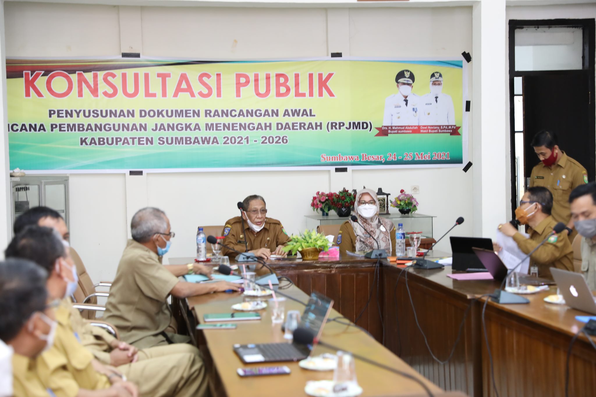 Sumbawa, Infoaktualnews.com – Bupati Sumbawa, Drs. H. Mahmud Abdullah, didampingi Wakil Bupati Sumbawa, Dewi Noviany, M.Pd., membuka secara resmi Konsultasi Publik, dalam rangka penyusunan dokumen Rencana Pembangunan Jangka Menengah Daerah (RPJMD) Kabupaten Sumbawa Tahun 2021-2026.