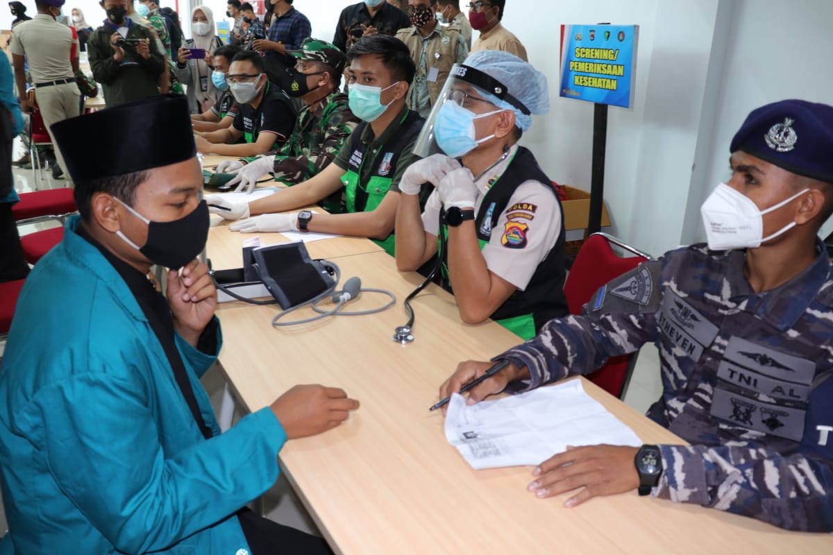 Vaksinator Covid-19 Pangkalan TNI AL (Lanal) Mataram turut terlibat dalam acara Vaksinasi Presisi Merdeka Goes To Campus dalam mewadahi kebutuhan Vaksinasi bagi generasi muda yang diselenggarakan oleh Kepolisian Daerah (Polda) NTB bekerjasama dengan Universitas Islam Negeri (UIN) Mataram yang diselenggarakan di Auditorium UIN Mataram Jl. Gajah Mada Pagesangan No.100, Jempong Baru, Kec. Sekarbela, Kota Mataram. Kamis (05/08/2021)