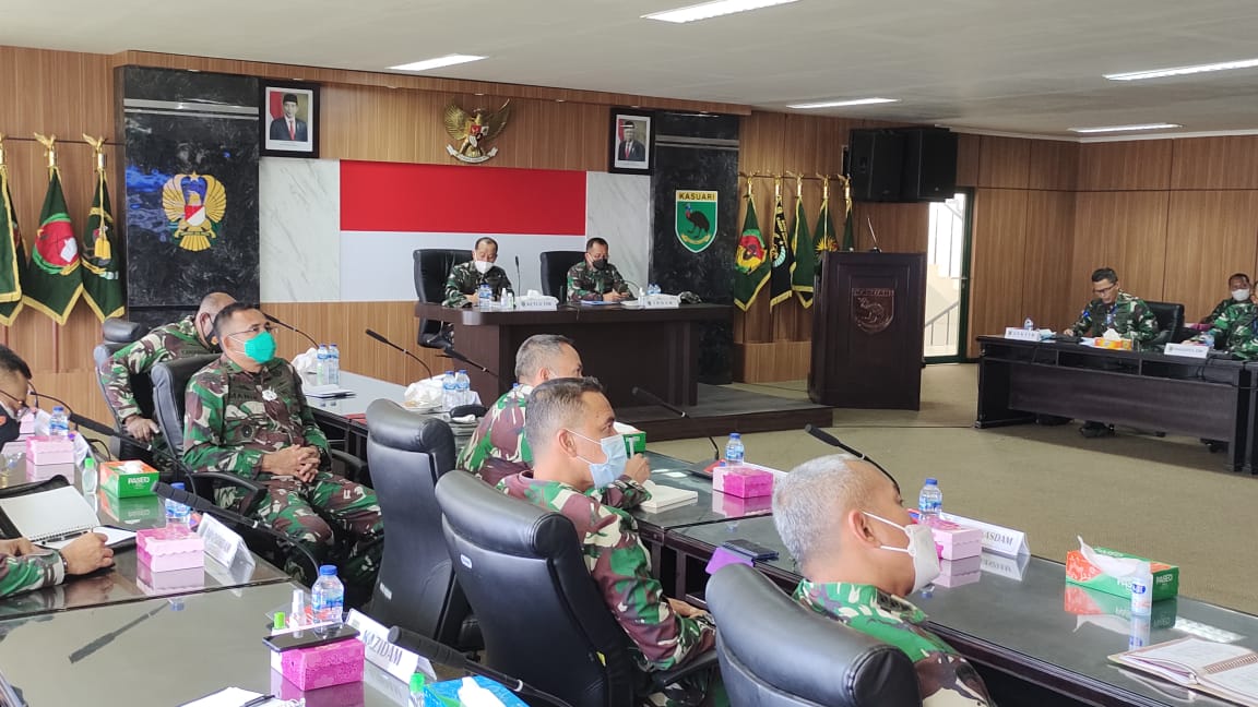 Manokwari – INFOAKTUALNEWS.COM,. kasuari18- Pangdam XVIII/Kasuari, Mayjen TNI I Nyoman Cantiasa memimpin acara taklimat akhir Wasrik Current Audit Itjenad TA 2021 di Kodam XVIII/Kasuari, dari ruang Yudha, Makodam, Trikora, Arfai 1, Manokwari, Papua Barat, Senin (16/8/2021).
