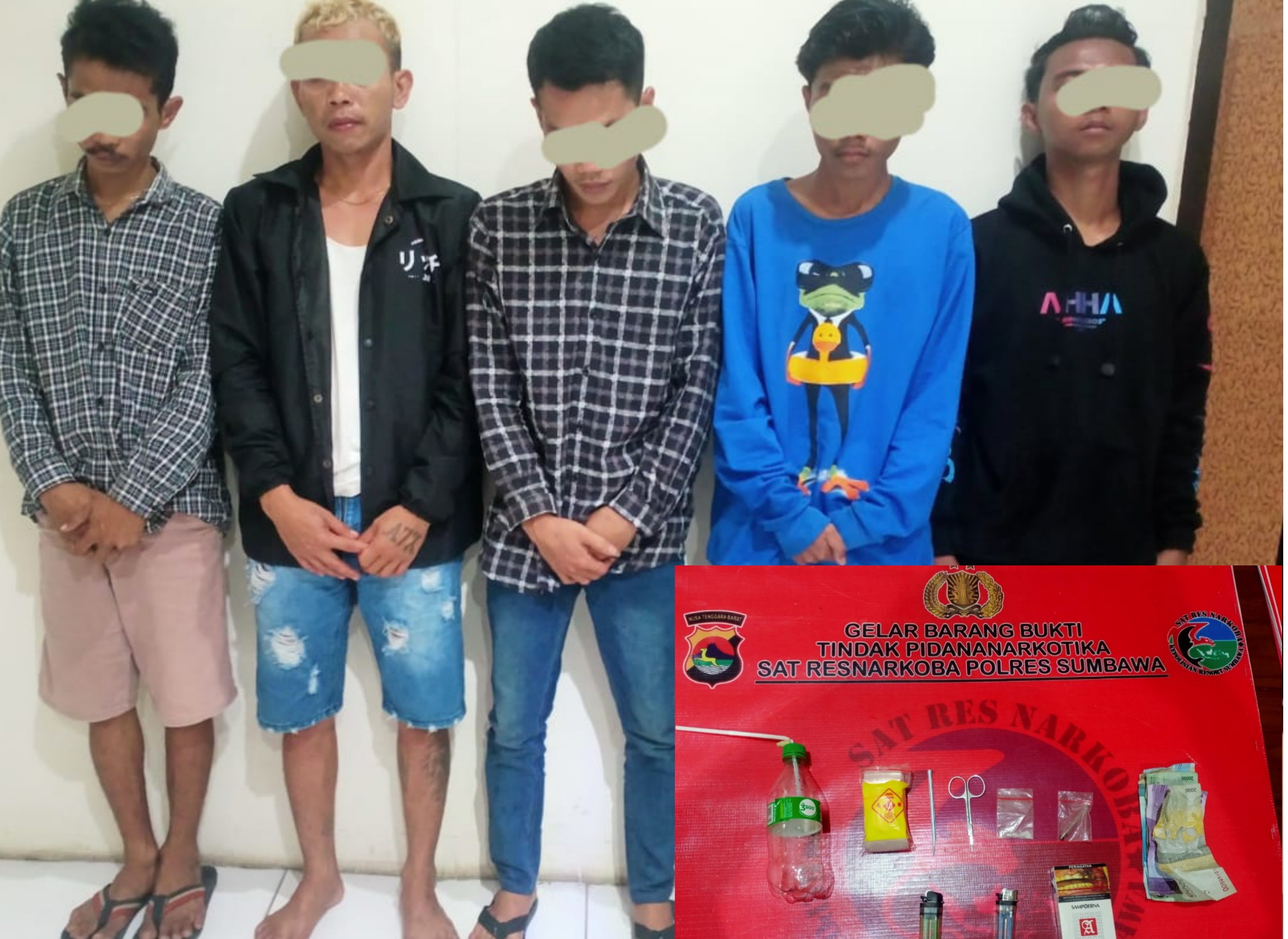 Sat Resnarkoba Polres Sumbawa Amankan 5 Orang Pemuda usai Pesta Shabu