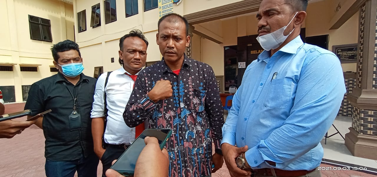 Dengan didampingi kuasa hukumnya dari LBH FERARI, Indra Bayu yang merupakan suami dari LA, tampak sedih dan meneteskan air mata saat diwawancarai Wartawan di Halaman Mako Polres Batu Bara.