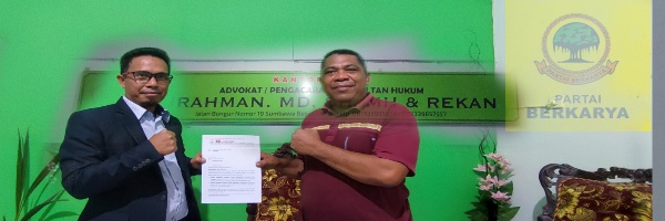 “Kerananya, dalam waktu dekat ini, saya selaku kuasa hukum DPW maupun DPC Partai Berkarya siap melaporkan dan memproses pidana oknum anggota Dewan tersebut, kerena telah membuat keterangan palsu dengan menerbitkan SK berdasarkan Plt yang tidak diakui oleh pemerintah dalam hal ini Kemenkum HAM sebagai lembaga tertinggi negara terkait partai politik,” cetusnya.