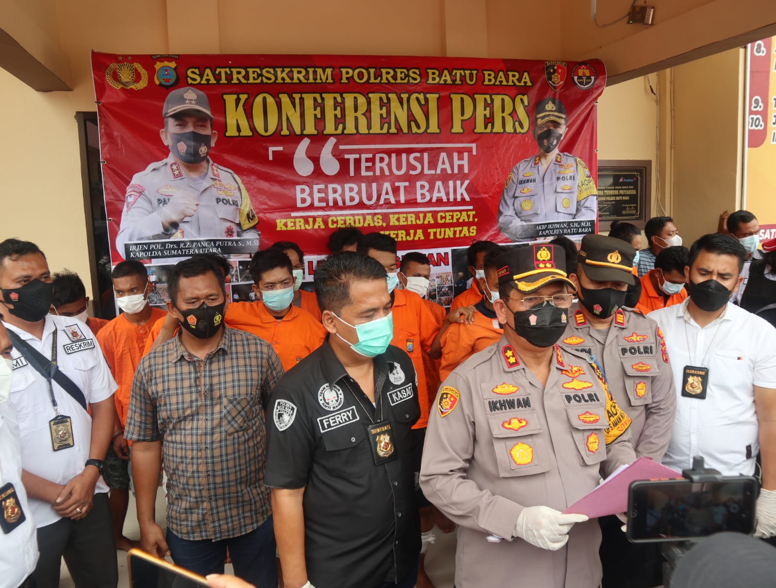 Kapolres Batu bara AKBP Ikhwan Lubis SH.MH di dampingi Kasat Reskrim AKP Ferry Khusnadi SH.MH. Kanit Resum IPDA Rener H Tambunan,S.H,M.H serta anggota Dalam pemaparannya Rabu (22/9/2021) menjelaskan ” Tidak ada ampun untuk pelaku kejahatan di wilayah hukum polres Batu bara , kita akan tindak tegas semua pelaku kejahatan , sengaja kami hadiai timah panas untuk mereka , Karna mereka melakukan perlawanan Kepada polisi saat di tangkap juga mereka memiki senjata tajam yang bisa saja mereka pergunakan saat melawan petugas.