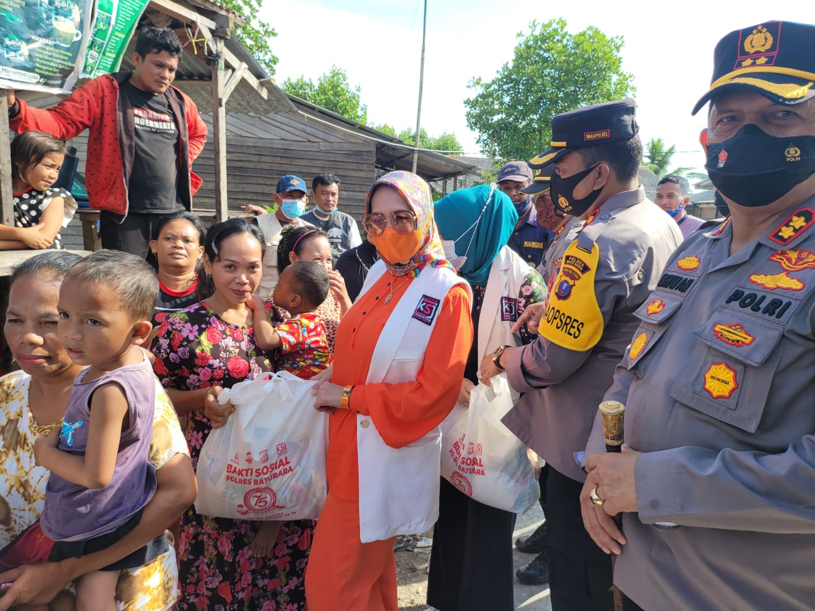 Tg. Tiram, 24-09-2021,- Pembina Kartini Komunitas Sedekah Jumat ( KSJ ) DR Henny Ikhwan M.Pd yang juga Ketua Cabang Bhayangkari Polres Batu Bara menyerahkan bantuan kepada anak yatim dan yatim piatu serta masyarakat nelayan seusai penanda tanganan Memory of Understanding ( MoU ) antara KSJ dengan MIO dan HNSI ( Himpunan Nelayan Seluruh Indonesia ).