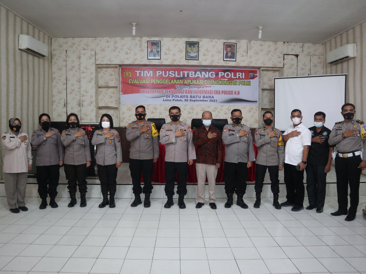 Batu Bara | 28/09/2021 Kunjungan Tim Peneliti Puslitbang Polri menggelar kegiatan evaluasi penggelaran Aplikasi di lingkungan Polri dalam rangka menerapkan Teknologi dan Informasi Era Police 4.0 di Aula Bhayangkari Polres Batu Bara.
