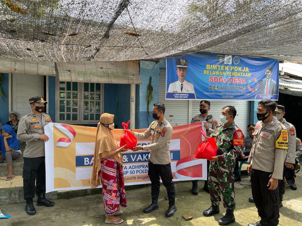 Para Perwira Lulusan Sekolah Inspektur Polisi angkatan ke – 50 Polda NTB sebanyak 17 orang mendatangi Dusun Bunsumpak, Desa Puyung, Kecamatan Jonggat, Lombok Tengah dalam rangka pemberian bantuan sembako, Senin (4/10) untuk menarik minat warga agar mau divaksin Covid-19 demi segera terciptanya Herd Immunity di wilayah tersebut.