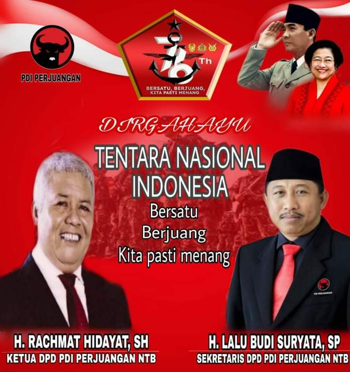 DPD PDI Perjuangan NTB Mengucapkan Dirgahayu TNI Ke-67