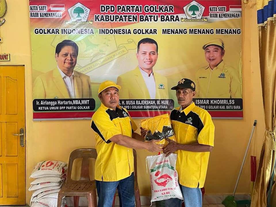 Batubara – INFOAKTUALNEWS.COM,. Ketua Dewan Pengurus Daerah (DPD) Partai Golkar Kabupaten Batubara Ismar Komri serahkan baju Partai Golkar kepada pengurus Partai yang ada di Desa/Kelurahan yang ada di Kabupaten Batubara, Sabtu (09/10/2021).