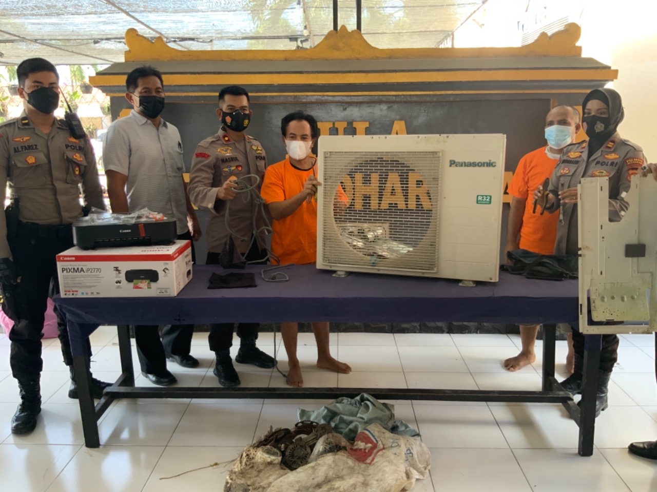 Barang berupa AC tersebut telah dipisahkan satu persatu alat/mesinnya dan dimasukkan kedalam karung, lalu di pindahkan oleh tersangka dengan mengangkat beberapa kali ke lokasi di pinggir jalan,” ungkapnya.