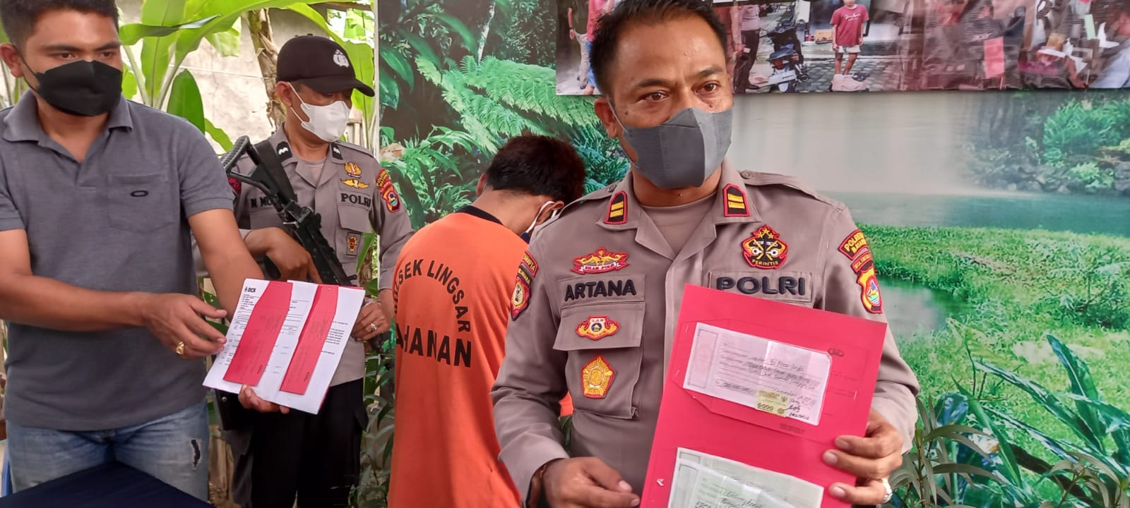 Atas perbuatanya pelaku di tahan di polsek lingsar guna proses hukum lebih kanjut berikut barang bukti hasil lejahatanya berupa