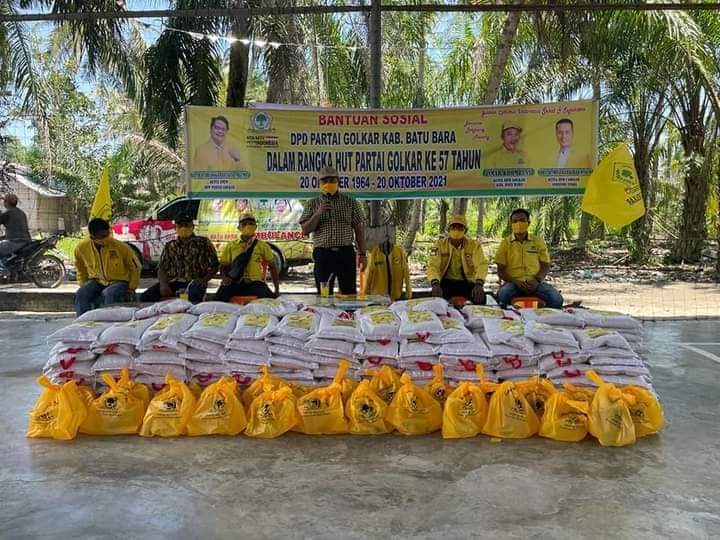 Batubara – INFOAKTUALNEWS.COM – DPD II Partai Golkar Kabupaten Batubara lakukan bakti sosial dalam rangka menyambut HUT Partai Golkar yang ke 57, di Desa Gambus Laut, Kecamatan Lima Puluh Pesisir Sabtu (16/10/2021).