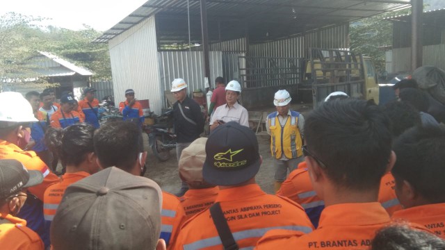 Ket.Foto: Karyawan PT. Brantas Adip Praya di Pembangunan Bendungan Bringin Sila, (Ist)