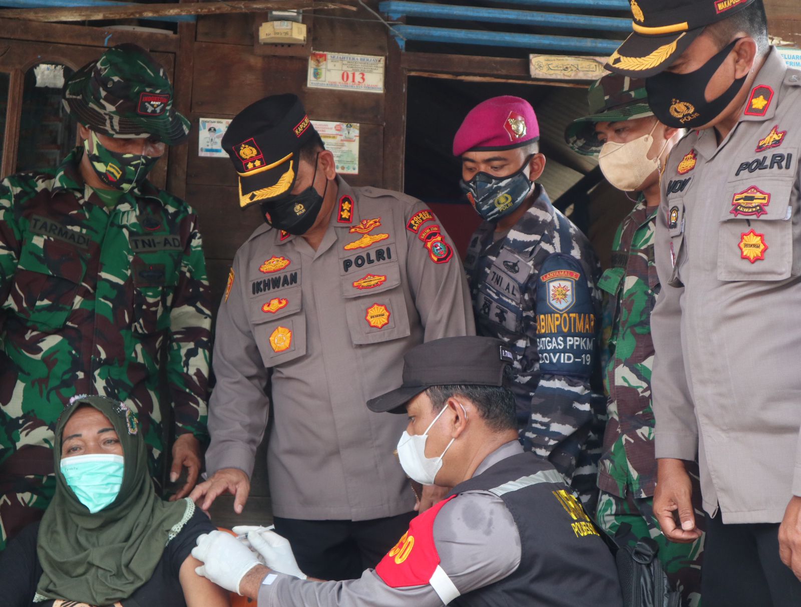 Kapolres Batubara bersama PJU, TNI dan Tim Vaksinator laksanakan Vaksinasi Secara Door to Door ke Rumah Masyarakat dengan, Menyeberangi Pinggir Laut dari Pelabuhan Tanjung Tiram Menuju Daerah Terpencil di Desa Bandar Rahmat, Kecamatan Tanjung Tiram, Batubara.
