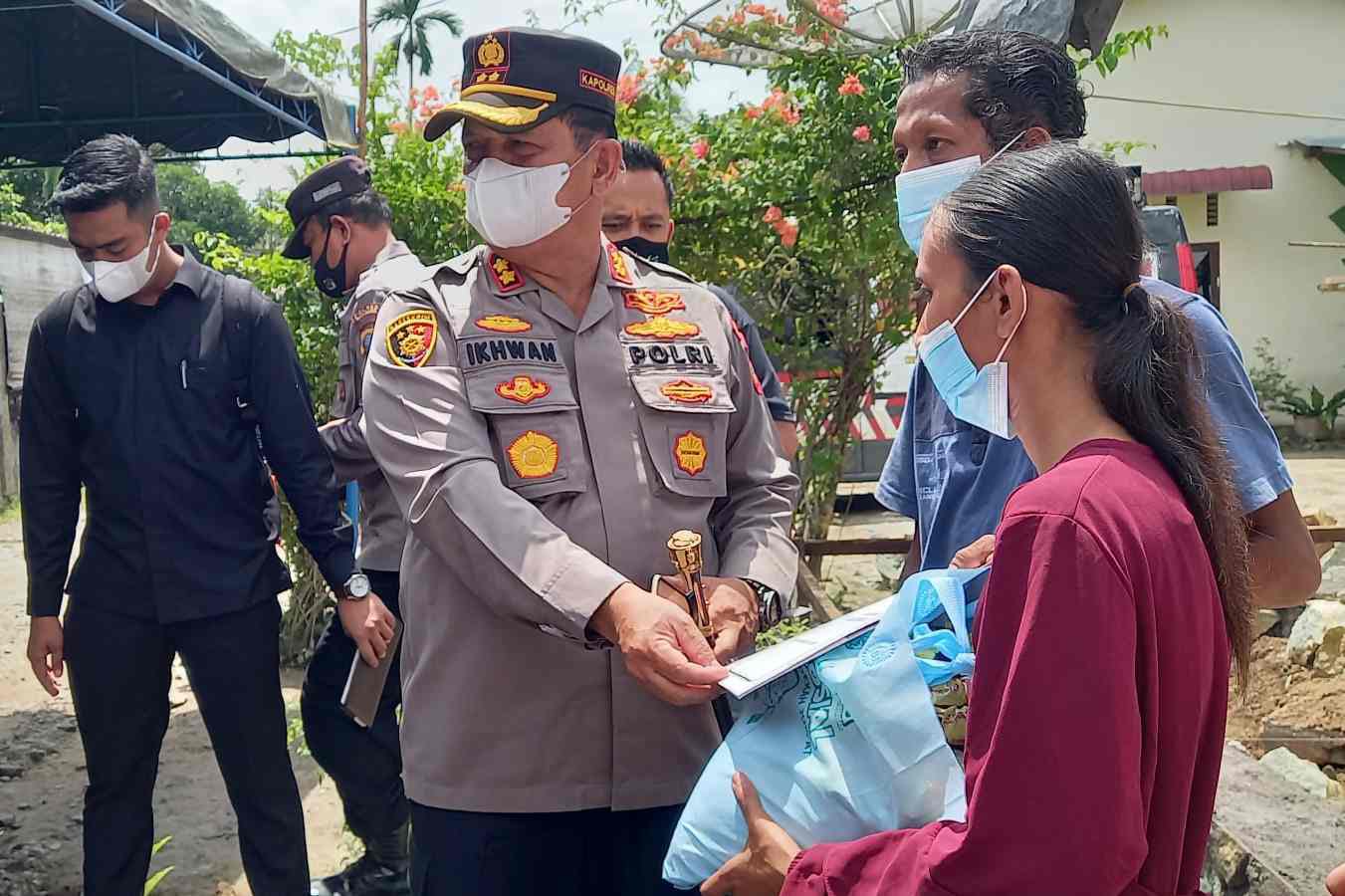 Selain peletakan batu pertama AKBP Ikhwan Lubis Kapolres Batu Bara juga menyerahkan tali asih dan bantuan sembako kepada Nilam, nek wonasih dan para tukang pekerja bedah rumah tersebut.