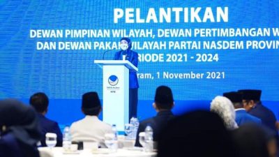Mataram, Infoaktualnews.com – Wakil Ketua Umum (Waketum) DPP Partai NasDem, Ahmad M. Ali melantik pengurus Dewan Pimpinan Wilayah (DPW) Partai NasDem Nusa Tenggara Barat (NTB) periode 2021-2024, Senin (1/11). Pelantikan dan sumpah jabatan berlangsung di PRIME PARK Hotel & Convention Lombok, dengan protokol kesehatan yang ketat.