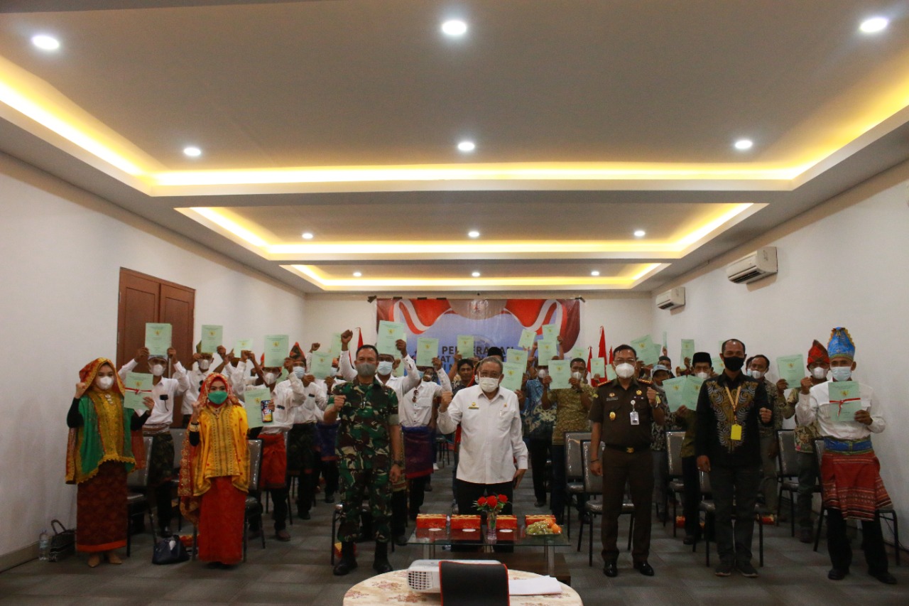 Sumbawa, Infoaktualnews.com – Pemerintah Pusat melalui Kementerian Agraria dan Tata Ruang-Badan Pertanahan Nasional (ATR/BPN) Republik Indonesia menyerahkan sebanyak 470 Sertifikat Pendaftaran Tanah Sistematis Lengkap (PTSL) Tahun 2021 secara simbolis kepada masyarakat di Propinsi Nusa Tenggara Barat, Rabu (24/11).