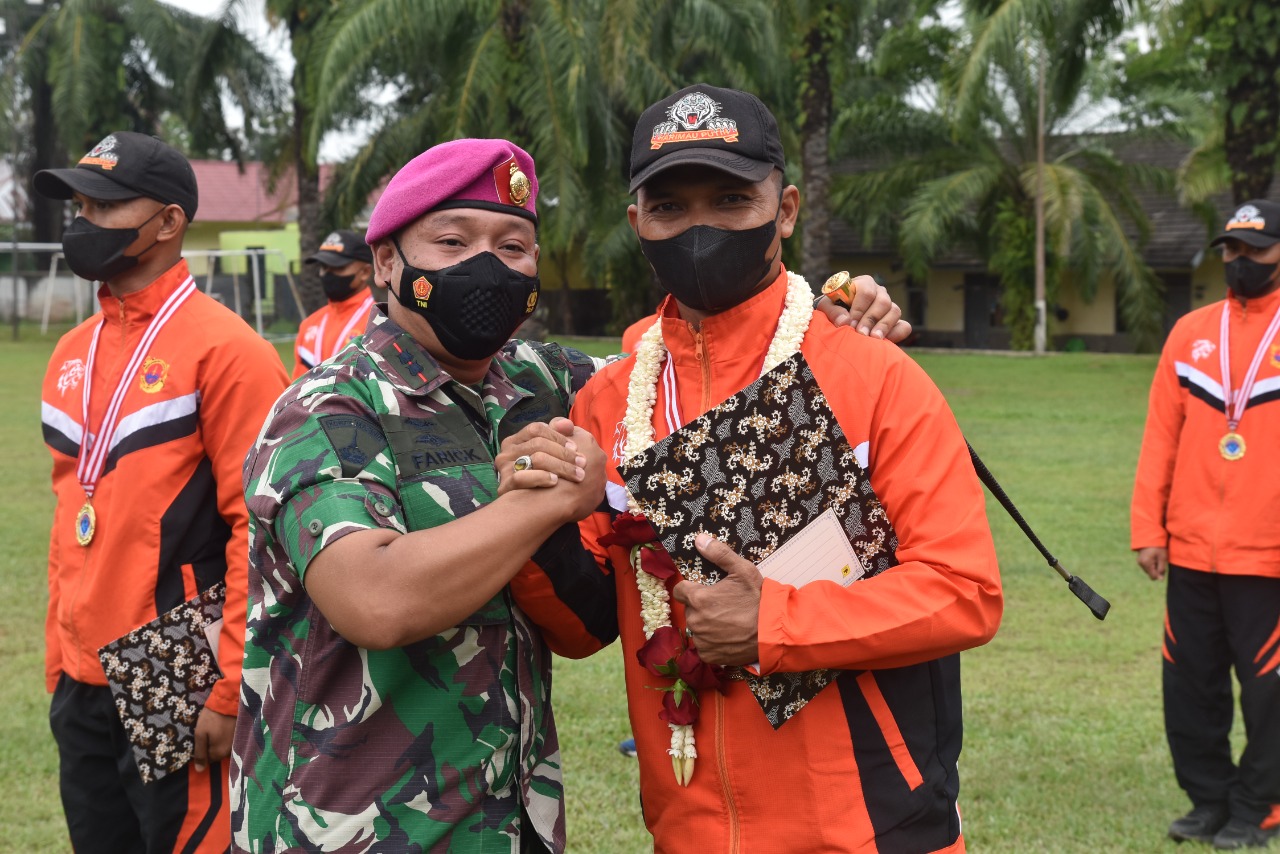 Langkat | Komandan Batalyon Infanteri 8 Marinir memimpin penyambutan kedatangan Atlet Prajurit Petarung Harimau Putih Yonif 8 Mar yang menorehkan prestasi gemilang di ajang olahraga air Kasal Cup 2021 Jakarta yang berlangsung di Lapangan Apel Yonif 8 Mar Harimau Putih, Kab. Langkat, Sumatera Utara. Selasa (07/12/2021).