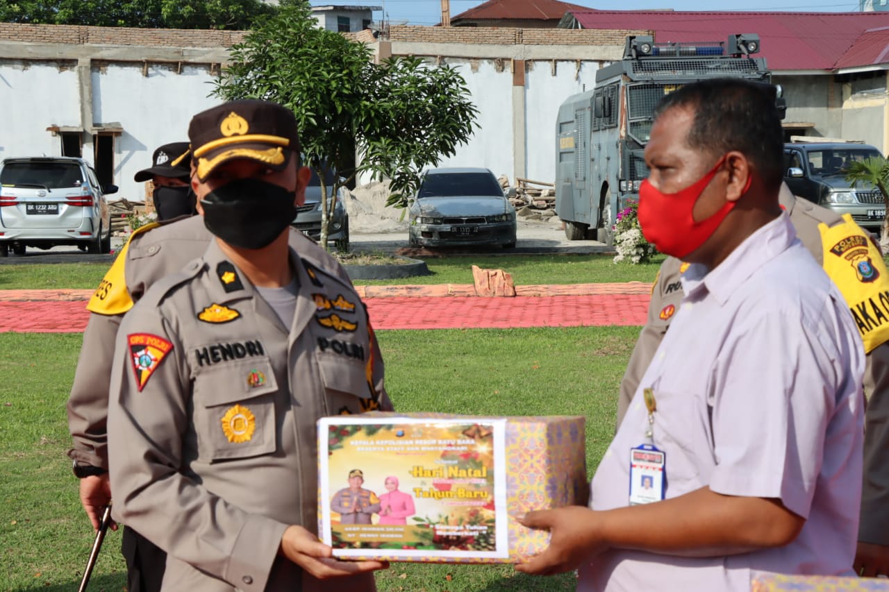 Kapolres Batubara memberikan secara simbolis paket Natal kepada Perwakilan Personel yang beragama Kristen serta awak media. Jangan dilihat dari isinya, ini adalah bentuk perhatian Komando kepada rekan rekan pungkasnya.