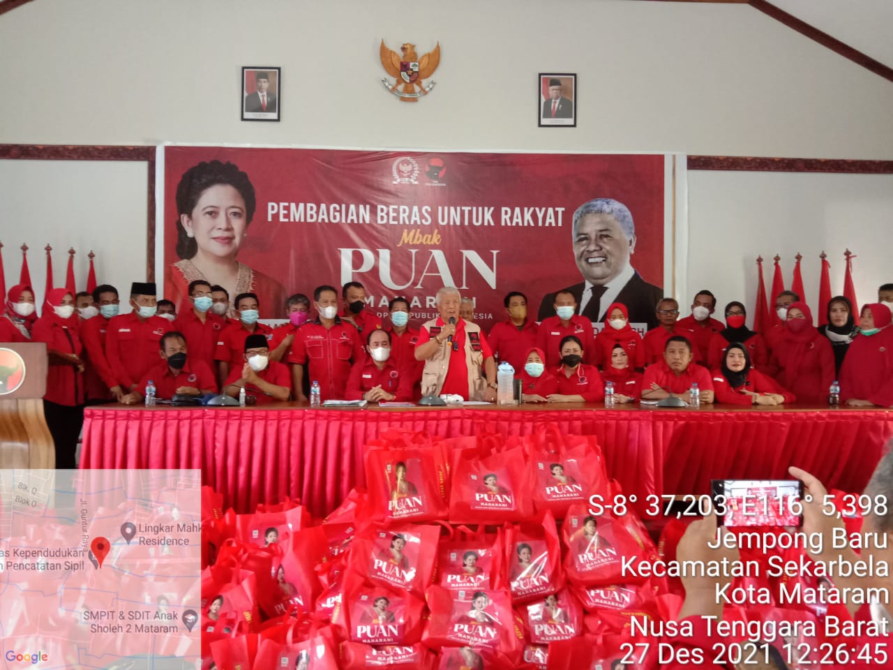 Bantuan beras tersebut disalurkan Puan Maharani melalui Anggota DPR RI dari NTB H Rachmat Hidayat, Senin (27/12). Adapun total ada 7.000 paket sembako yang dibagikan untuk masyarakat yang bermukim di Mataram, Lombok Barat, Lombok Tengah, Lombok Timur, Lombok Utara, Sumbawa Barat, dan Sumbawa.