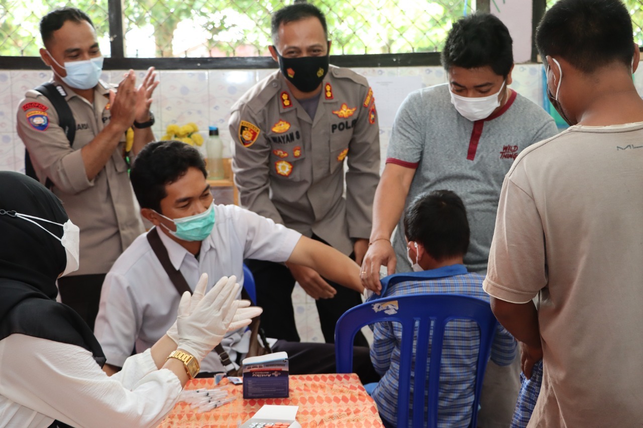 Giat Vaksinasi Serentak Seluruh Indonesia di hadiri oleh Kapolres Lotara AKBP I Wyn Sudarmanta, S.ik. MH. Kabag Ops Kompol Raditya Suharta, SH, S.ik.