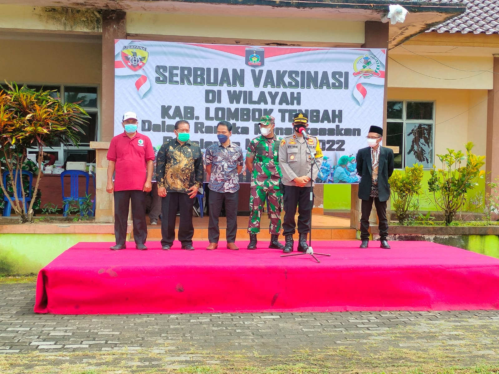 Kegiatan diawali dengan sambutan dari Kepala Dinas Kesehatan Kabupaten Lombok Tengah, Dandim 1620/Loteng, Wakapolres Lombok Tengah serta Kapolsek Kopang, kemudian dilanjutkan dengan peninjauan pelaksanaan Vaksinasi.