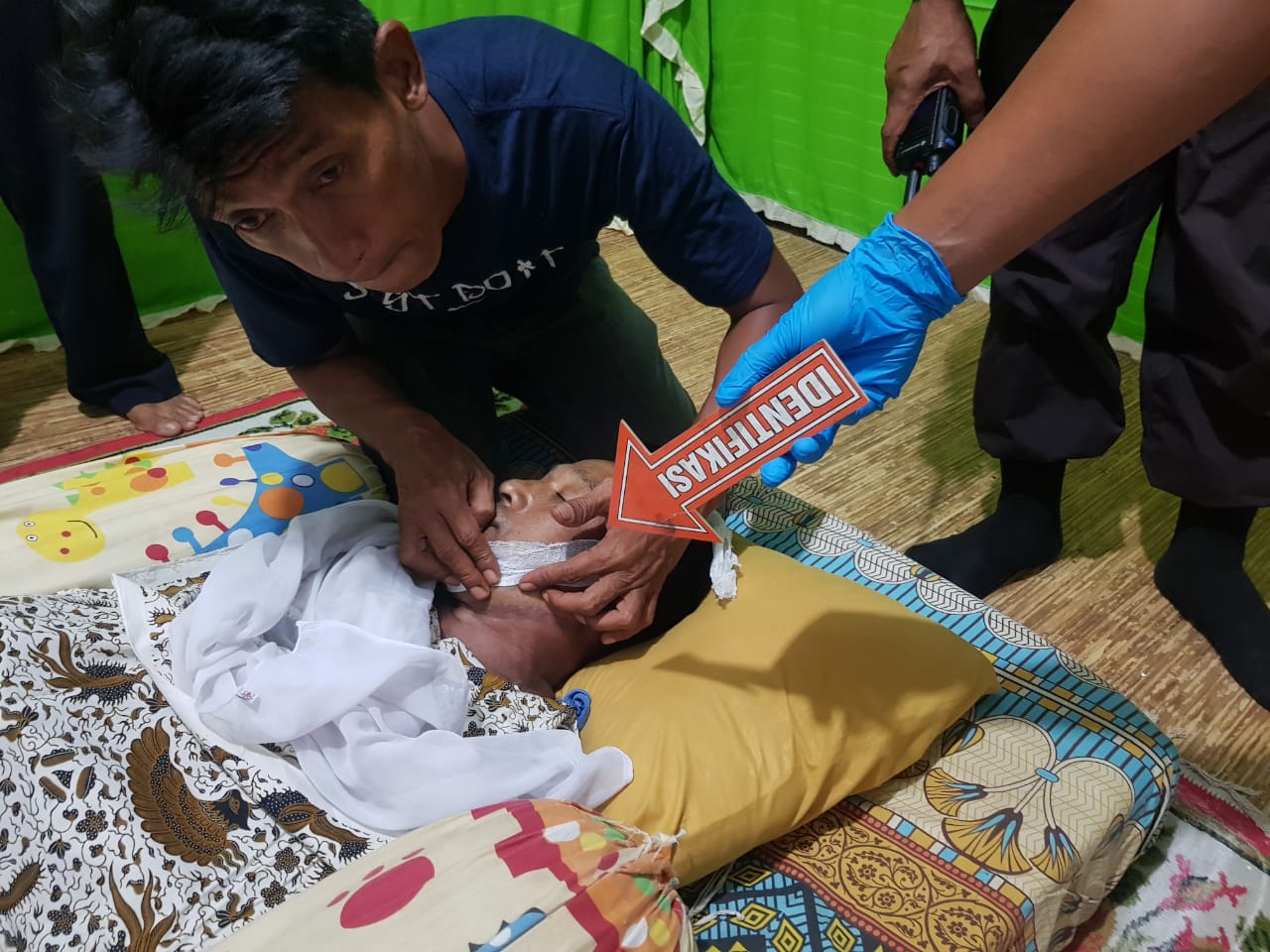 kemudian korbam di pangil oleh istrinya tetapi tidak ada sahutan selanjutnya istri korban berlari membuka pintu dan menemukan korban sudah meninggal dunia dalam keadaan tergantung dengan menggunakan tali nilon warna putih di pelafon dalam kamar rumahnya