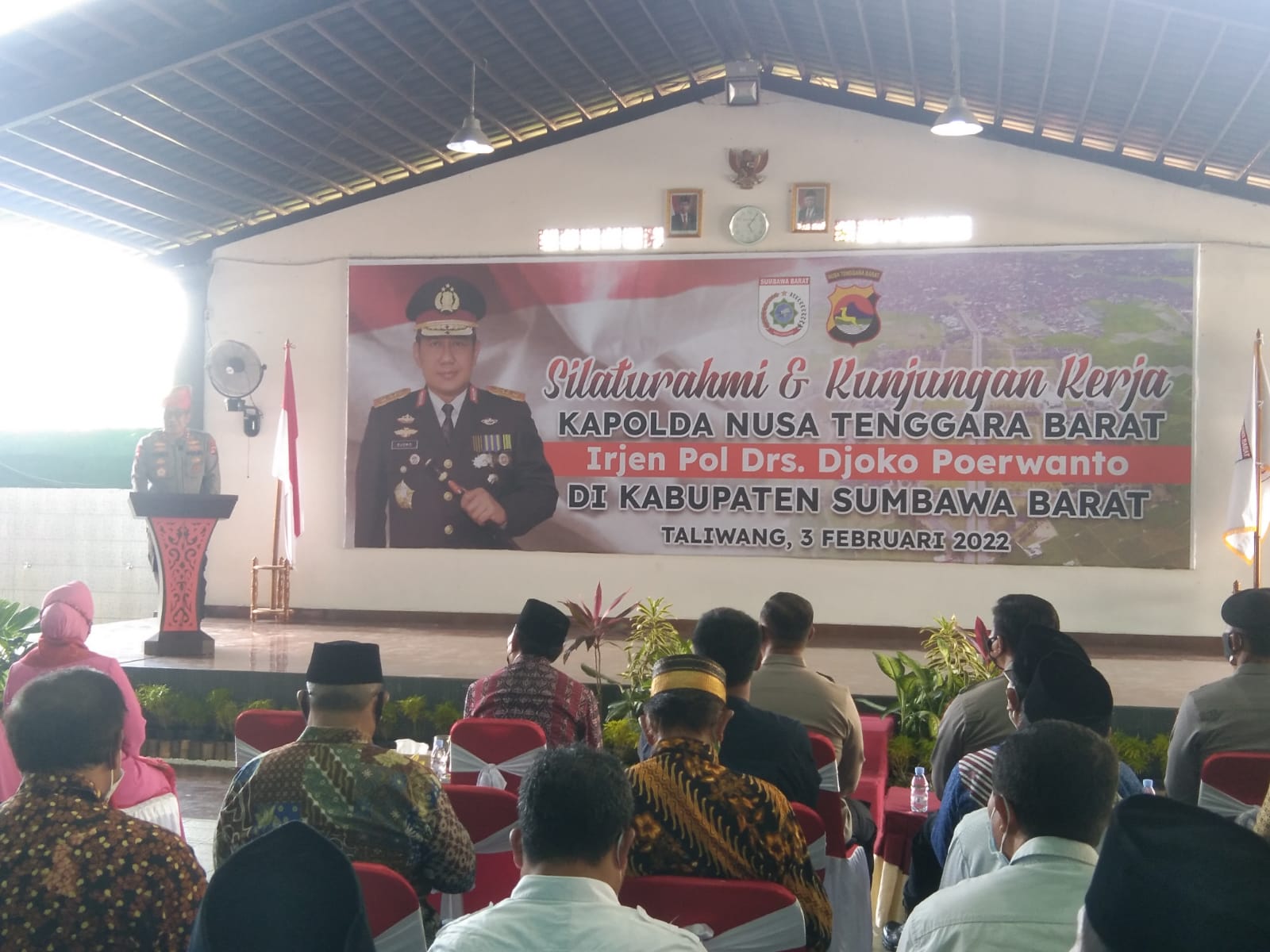 Sumbawa Barat- infoaktualnews.com Kapolda NTB, Irjen. Pol. Djoko Poerwanto bersama Ketua Bhayangkari Daerah NTB Ny. Irna Djoko Poerwanto berserta rombongan melakukan kunjungan kerja selama dua hari di Kabupaten Sumbawa Barat (02/01/22).