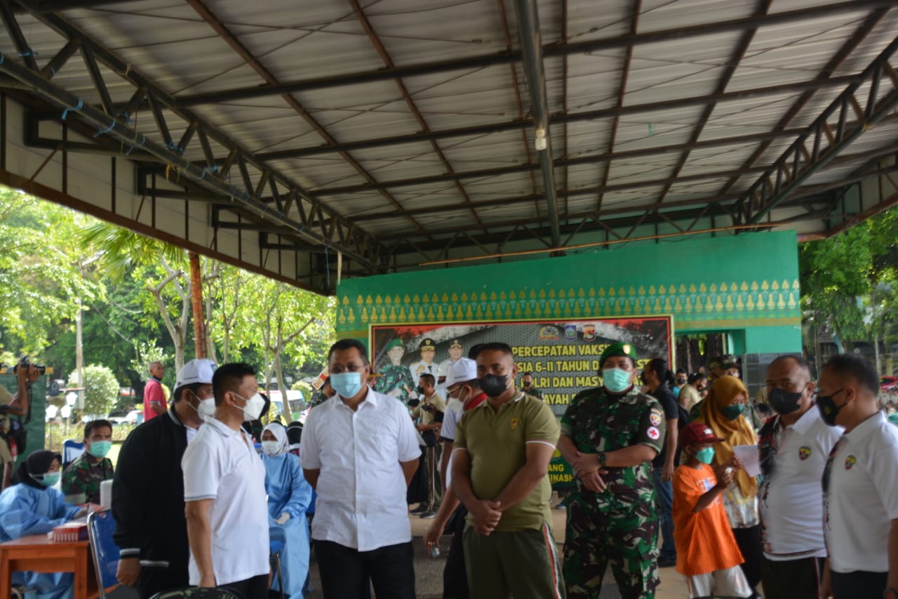 Korem 162/Wira Bhakti menggelar vaksinasi untuk anak 6 – 11 tahun serta Booster bagi TNI POLRI dan masyarakat di lapangan Sangkareang jalan Pejanggik Kota Mataram, Jum’at (4/2/2022).
