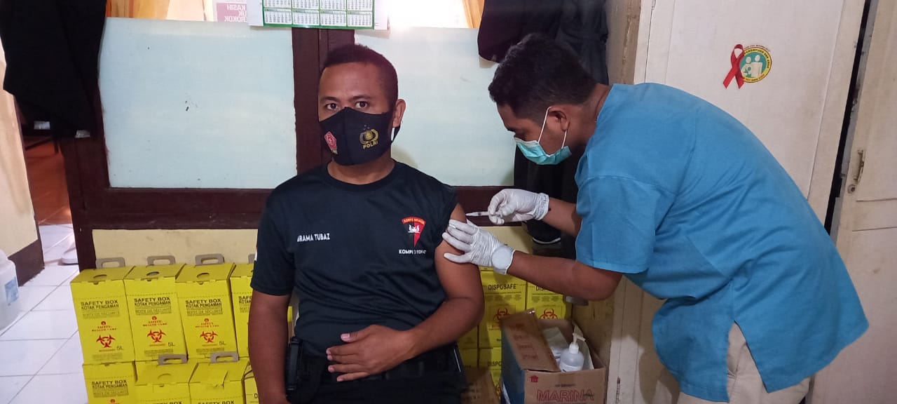 Personel Brimob mulai dari Danki perwira, bintara, Satuan Batalyon II Kompi C Brimob wajib melakukan vaksin ketiga yakni vaksin booster yang bertempat di Ruangan Sie Dokes Polres Dompu.
