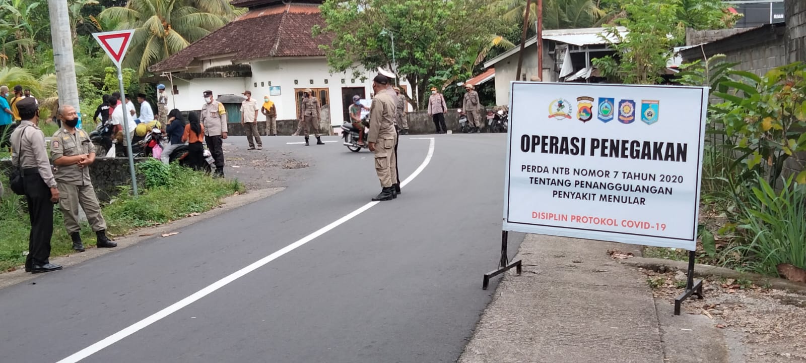 Kita mulai pukul 15.00 wita karena banyak aktivitas masyarakat pedesaan menjelang sore hari bertempat di simpang tiga lapangan golf Desa Golong Kecamatan Narmada dalam rangka penegakan Perda nomor 7 tahun 2020 tentang penanggulangan penyakit menular.