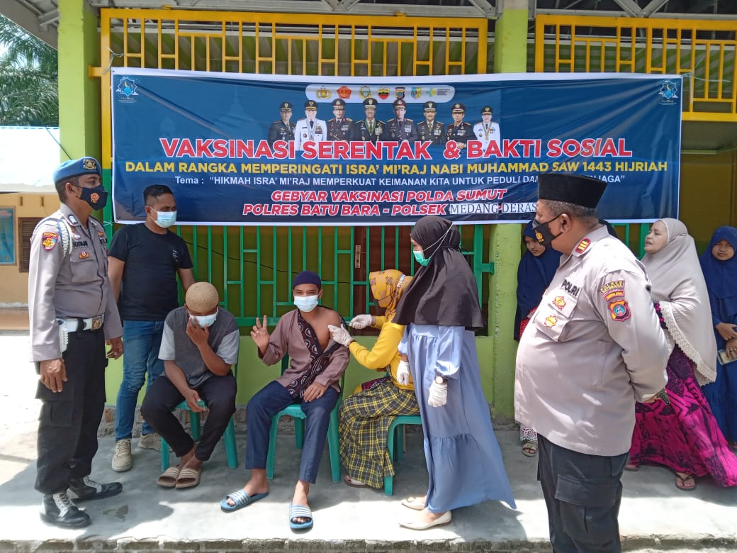 Batubara INFOAKTUALNEWS.COM – Senin (28/02/2022) Polsek Medang Deras Polres Batubara gelar kegiatan bakti sosial dan Vaksinasi secara serentak dalam rangka peringatan Isra Miraj 1443 Hijriah.