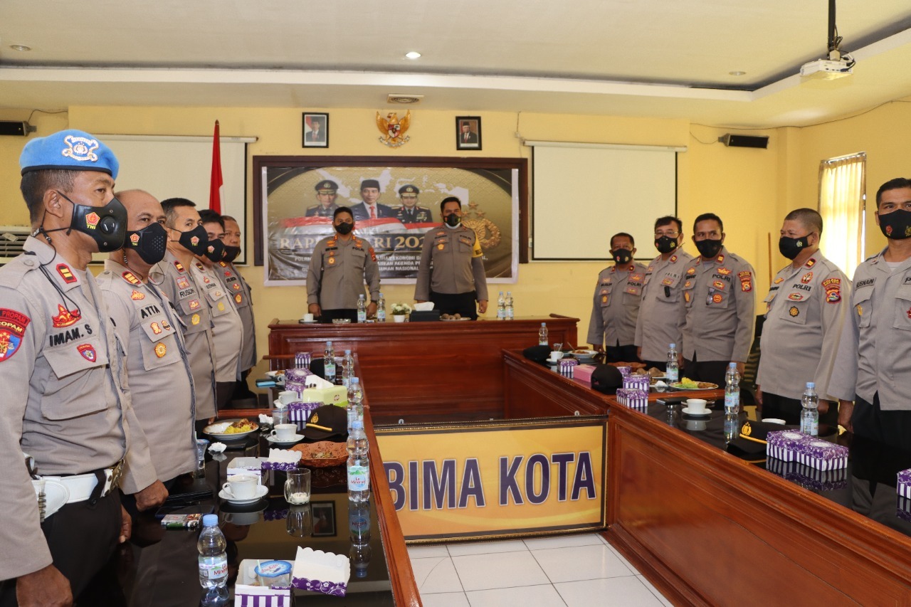 Kapolres Bima Kota AKBP Henry Novika Chandra mengikuti Rapimnas bersama Wakapolres Bima Kota Kompol Mujahidin dan para pejabat utama Polresta Bima Kota di Ruang Rapat Utama (Rupatama) Mako Polres Bima Kota