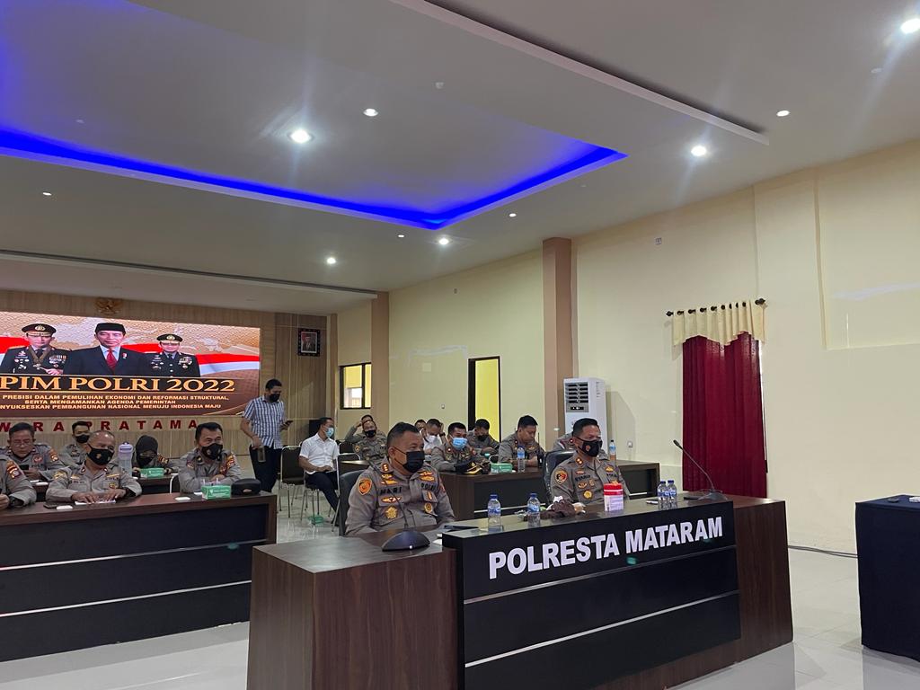 Kapolresta Mataram Kombes Pol Heri Wahyudi SIK MM didampingi pejabat utama Polresta Mataram tampak mengikuti rapat pimpinan tersebut dengan sarana zoom meeting di ruangan video confrence Gedung Wira Pratama Polresta Mataram.
