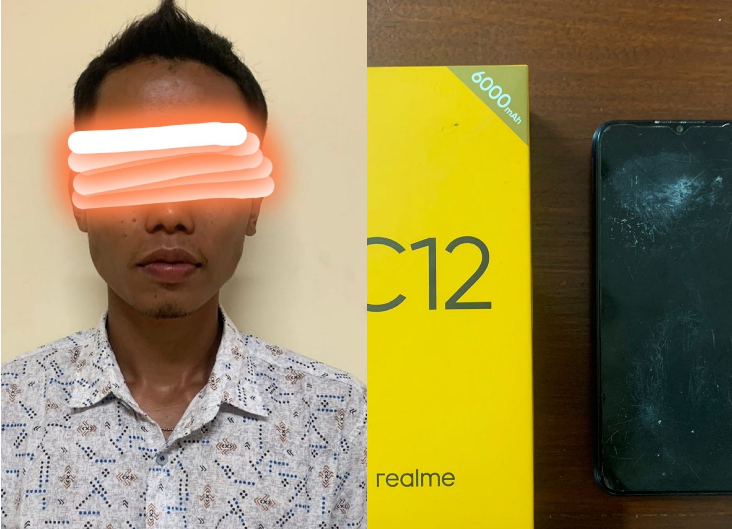 Penqgkapan pelaku berawal dari informasi masyarakat bahwa ada salah seorang pemuda yang datang ke sebuah konter untuk menjual hp jenis Realmi C12 dengan No. IMEI1 : 864879051567198, IMEI2 : 864879051567180 persis seperti Hp yang di laporkan hilang.